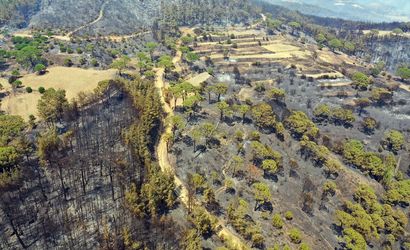 Aydın'ın Bozdoğan ilçesinde devam eden orman yangını nedeniyle zarar gören alanlar dron ile havadan görüntülendi. Yangın, Alhisar Mahallesi'nin üst kesimlerinde dün başlamış ve kısa sürede geniş bir alana yayılmıştır.
