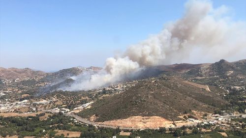 Aydın'ın Bozdoğan ilçesinde çıkan orman yangınına hem havadan hem de karadan müdahale sürüyor.