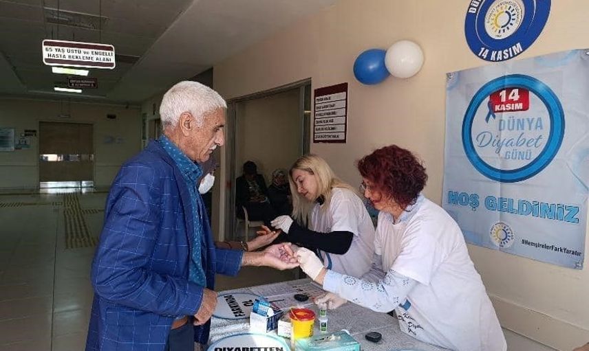 Aydın Devlet Hastanesi, Dünya Diyabet Günü kapsamında farkındalık artırmak amacıyla bir bilgilendirme etkinliği düzenledi. Hastane girişinde kurulan stantta vatandaşlara ücretsiz kan şekeri ölçümü yapıldı.