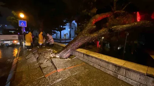 Aydın Efeler'de Bey Camii önündeki asırlık çam, gün boyu süren sağanak nedeniyle saat 23.00 civarında kökünden sökülüp devrildi; ekipler kaldırdı.