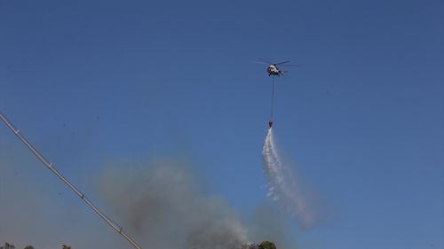 Aydın Efeler Pınardere Mahallesi'nde zeytinlik ve ormanlık alanda çıkan yangına Orman İşletme Müdürlüğü ekipleri havadan ve karadan müdahale ediyor.