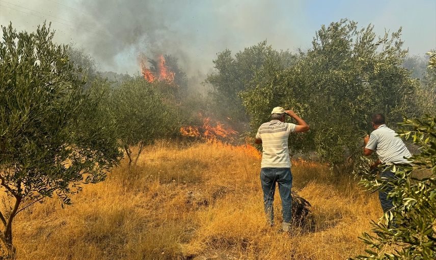 Aydın'ın Germencik ilçesinde, Gümüşköy mevkisindeki zeytinlik ve ormanlık alanda çıkan yangın, bölgedeki ekiplerin yoğun müdahalesiyle kontrol edilmeye çalışılıyor. Yangının nedeni henüz belirlenememişken, alevlerin rüzgarın da etkisiyle ormanlık alana sıçradığı bildirildi.
