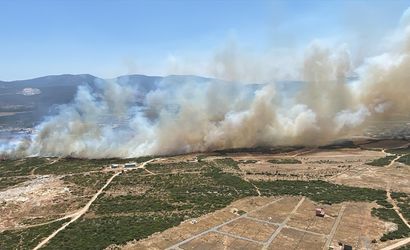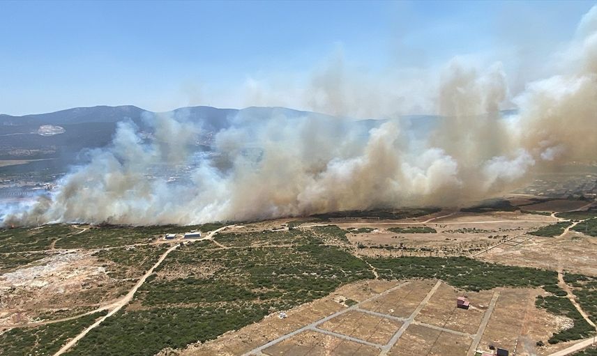 Aydın'ın Didim ilçesinde makilik alanda çıkan yangına havadan ve karadan müdahale ediliyor.