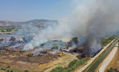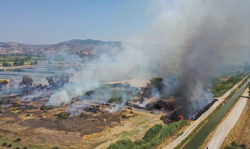 Yangının alevleri, bir çiftliğin bahçesindeki saman malzemelerine sıçramasıyla büyüdü. Özellikle rüzgarın etkisiyle hızla yayılan yangın, ekipler tarafından güçlükle kontrol altına alındı.