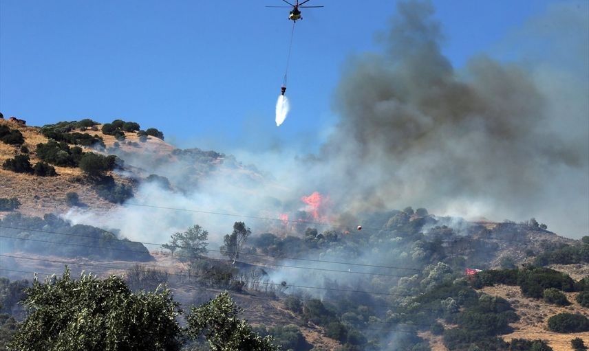 Aydın'ın Efeler ilçesinde zeytin ağaçlarının bulunduğu alanda çıkan yangına havadan ve karadan müdahale ediliyor.