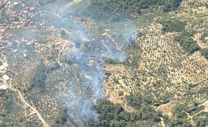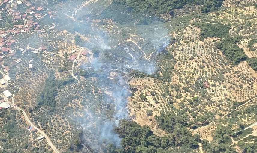 Aydın'ın Germencik ilçesi Dağyeni Mahallesi'nde çıkan orman yangınına havadan ve karadan müdahale ediliyor.
