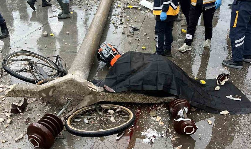 BETON DİREĞİN ALTINDA KALAN BİSİKLETLİ HAYATINI KAYBETTİ