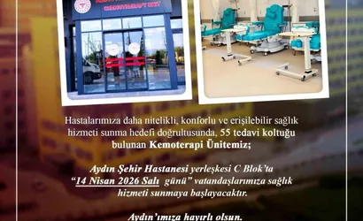 Aydın İl Sağlık Müdürlüğü'nden yapılan açıklamaya göre, hastanenin C Blok'unda yer alan Göğüs Hastalıkları, Psikiyatri, Dahiliye, Romatoloji, Cildiye (Dermatoloji) ve Enfeksiyon Hastalıkları poliklinikleri ile bu branşlara ait servisler ve Onkoloji Polikliniği ile Servisi, 13 Nisan 2026 tarihi itibarıyla hasta kabulüne başlayacak.