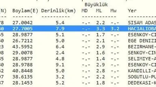 Son dakika Aydında hissedilen ufak çaplı deprem büyüklüğü 3.3 olarak kaydedildi. Aydın'ın HACIALIOBASI mevkinde yerin 7.9 Km altında gerçekleşen deprem aydınlıları korkuttu.