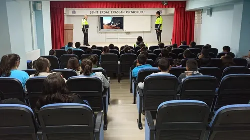 Aydıntepe İlçe Emniyet Amirliği, ilçedeki tüm okullarda öğrencilere trafik kuralları, yaya güvenliği ve trafik işaretleri konusunda eğitim vererek trafik bilincini artırmayı hedefledi.
