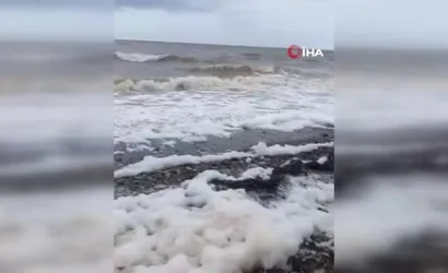 Sazlı köyü sahilinde yürüyüşe çıkan vatandaşlar, kıyıda oluşan köpükleri cep telefonuyla kaydetti. Kıyı boyunca meydana gelen köpük, sahil bölgesinde dikkat çeken bir görüntü oluşturdu.