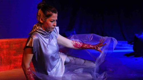 Ayvalık Belediye Tiyatrosu, 27 Mart'ta Seral Çelikbaş'ın tek kişilik performansıyla 'Müdahil'i sahneledi; oyun kadına şiddeti bir silahın perspektifinden ele aldı.