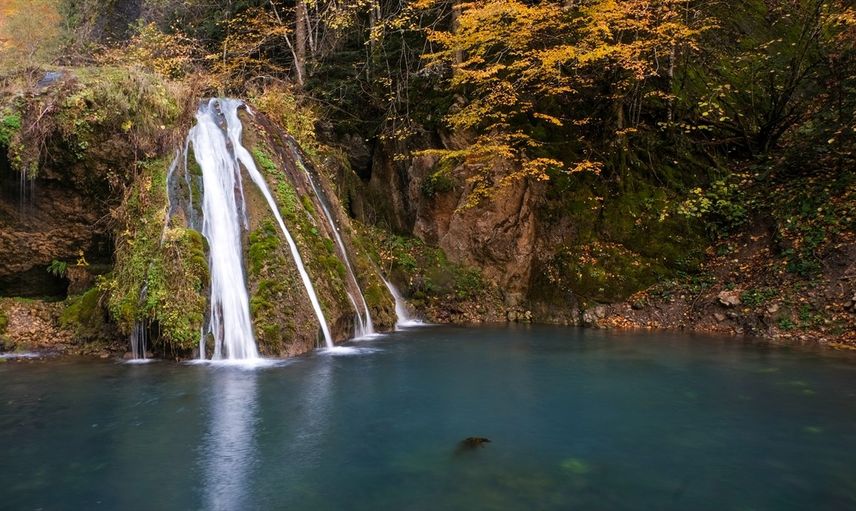 Kastamonu'nun Azdavay ilçesindeki Saray köyünde yer alan Saray Şelalesi, sonbaharın yeşil, sarı ve kahverenginin tonlarıyla mevsimin görsel zenginliğini sunuyor.