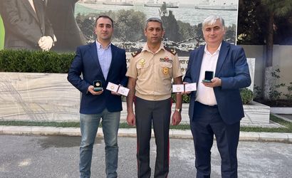 Azerbaycan Savunma Bakanı Zakir Hasanov, Anadolu Ajansı (AA) Azerbaycan muhabirleri Ruslan Rehimov (solda) ile Resul Rehimov'u (sağda) "Askeri İş Birliği" rozeti ile taltif etti. Ruslan Rehimov ile Resul Rehimov'a ödüllerini Azerbaycan Savunma Bakanlığı Personel Daire Başkanı Tümgeneral Müşfig Memmedov (ortada) takdim etti.