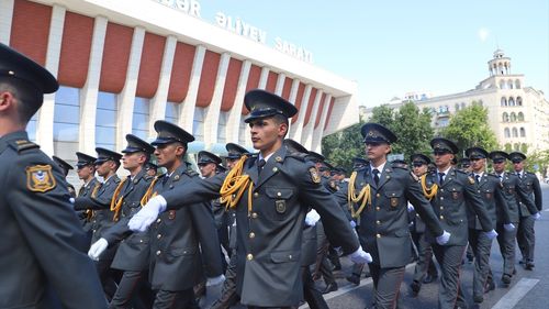 Azerbaycan'da Silahlı Kuvvetler Günü Kutlaması Azerbaycan, Silahlı Kuvvetler Günü ve ordunun 107. kuruluş yıl dönümü dolayısıyla başkent Bakü'de büyük bir geçit töreni düzenledi. Törende, Harp Okulu öğrencileri ve subaylar, şehrin merkezi cadde ve sokaklarında yürüyüş yaparak törenin coşkusunu artırdı. Azerbaycan…