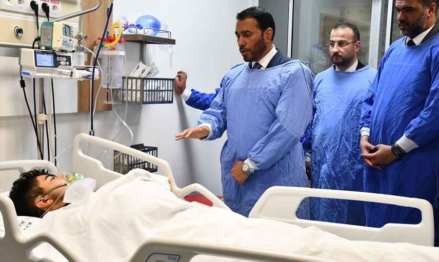 Birleşik Arap Emirlikleri'nin (BAE) Ankara Büyükelçisi Said Sani ez-Zahiri (sol 3), Trabzon'un Çaykara ilçesinde meydana gelen trafik kazasında yaralanan baba ve oğlunu hastanede ziyaret etti.