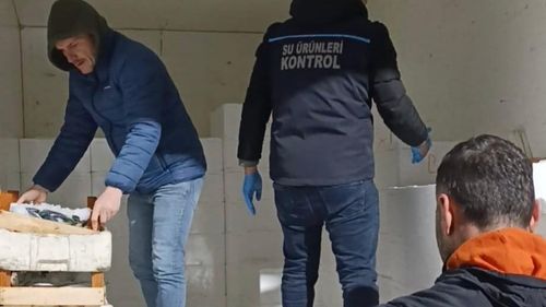 Samsun Bafra'da 18 Ocak'ta yapılan kontrolde, asgari avlanma boyunun altında olduğu belirlenen 192 kasa (yaklaşık 2,6 ton) mezgit el konuldu ve kamuya geçirildi.