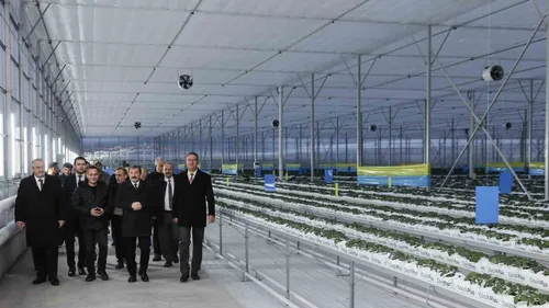 Samsun Valisi Orhan Tavlı, Bafra Sera OTB'de 48 bin m²'lik tesiste ileri teknolojiyle topraksız çilek üretimini inceledi.