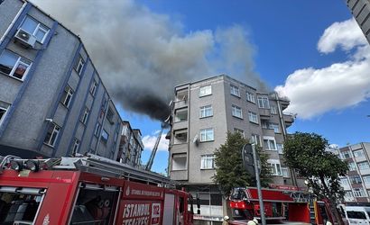 Bağcılar'da 4 katlı binanın çatısında çıkan ve yan binaya sıçrayan yangın itfaiye ekiplerince söndürüldü.