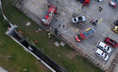 İSTANBUL BAHÇELİEVLER’DE OTOPARKTAN ÇIKAN KADIN SÜRÜCÜ DİREKSİYON HAKİMİYETİNİ KAYBEDEREK ÇOK SAYIDA ARACA ÇARPTI. DEMİR KORKULUKLARI AŞAN OTOMOBİL BOŞLUĞA DÜŞTÜ. SIKIŞAN SÜRÜCÜ İTFAİYE YARDIMIYLA KURTULURKEN, YAPILAN ÇALIŞMALAR HAVADAN GÖRÜNTÜLENDİ.