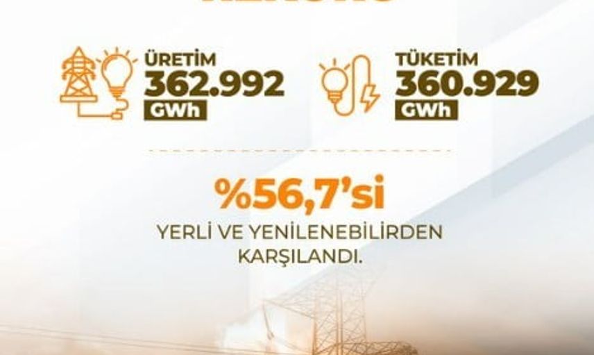 Ayrıca toplam üretimin %56,7'sinin yerli ve yenilenebilir kaynaklardan sağlandığı vurgulandı ve Bayraktar, "Türkiye’nin enerjisini Türkiye’nin öz kaynaklarıyla yükseltmeye ve arz güvenliğimizi güçlendirmeye devam edeceğiz" dedi.