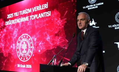Kültür ve Turizm Bakanı Mehmet Nuri Ersoy, Atatürk Kültür Merkezi'nde düzenlenen basın toplantısında 2025 yılının dördüncü çeyrek ve yıllık turizm verilerini paylaştı. Sunumda Türkiye'nin 2025 yılı turizm gelirinin 65 milyar 231 milyon dolar olduğu belirtildi; Bakan Ersoy 2026 hedefinin ise 68 milyar dolar olduğunu ifade etti.