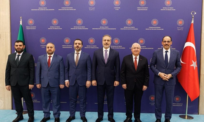 Dışişleri Bakanı Hakan Fidan (sağ 3), Milli Savunma Bakanı Yaşar Güler (sağ 2) ve Milli İstihbarat Teşkilatı (MİT) Başkanı İbrahim Kalın (sağda); Suriye Dışişleri Bakanı Esad Hasan Şeybani (sol 3), Suriye Savunma Bakanı Murhef Ebu Kasra (sol 2) ve Suriye İstihbarat Başkanı Hüseyin Seleme (solda) ile Ankara'da görüştü.