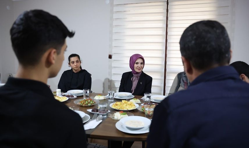Aile ve Sosyal Hizmetler Bakanı Mahinur Özdemir Göktaş (solda), eşi Rahmi Göktaş ve çocuklarıyla birlikte, 6 Şubat 2023'teki Kahramanmaraş merkezli depremlere Hatay'ın Antakya ilçesinde yakalanan, evleri ağır hasar aldığı için Ankara'ya getirilen 6 çocuklu Döne ve Ahmet Sınırgeç ailesinin iftar sofrasına konuk oldu. Bakan Göktaş, iftarın ardından aileyle sohbet etti.