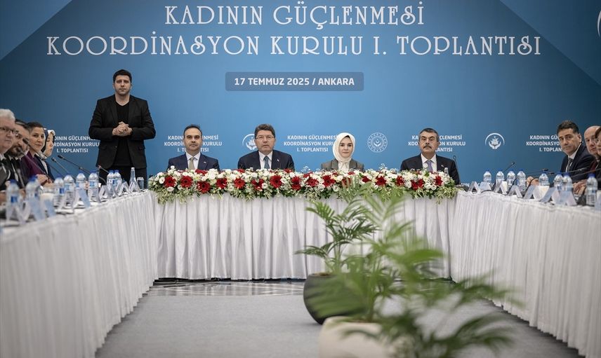 Kadının Güçlenmesi Koordinasyon Kurulu 1. Toplantısı, Aile ve Sosyal Hizmetler Bakanı Mahinur Özdemir Göktaş (sağ 2), Adalet Bakanı Yılmaz Tunç (sol 2), Sanayi ve Teknoloji Bakanı Mehmet Fatih Kacır (solda) ve Milli Eğitim Bakanı Yusuf Tekin'in (sağda) katılımı ile Ankara Hakimevi'nde gerçekleştirildi.
