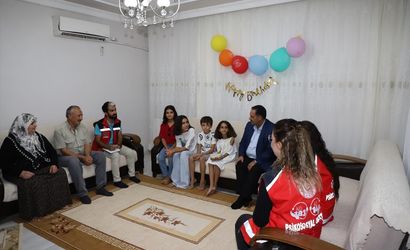 Aile ve Sosyal Hizmetler Bakanı Mahinur Özdemir Göktaş, Adıyaman'da enkaz altından çıkarılan 9 yaşındaki Vuslat Rana Yaman'a pasta ve hediye göndererek doğum gününü kutladı. Kutlamada, Aile ve Sosyal Hizmetler İl Müdürü Hasan Bilici (sağ 4) de yer aldı.