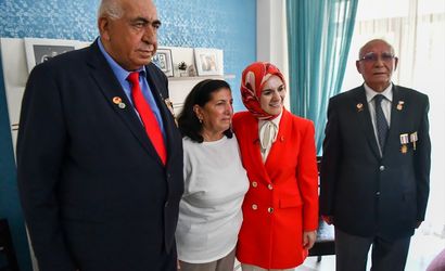 Aile ve Sosyal Hizmetler Bakanı Mahinur Özdemir Göktaş, Tunceli'de yaşayan Kıbrıs gazisi Ali Korkmaz (solda) ile bir araya geldi.