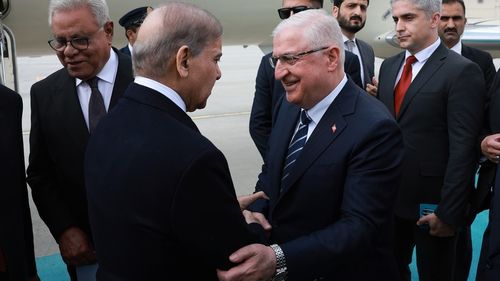 Milli Savunma Bakanı Yaşar Güler, Pakistan Başbakanı Şahbaz Şerif'i Ankara Esenboğa Havalimanı'nda karşıladı.