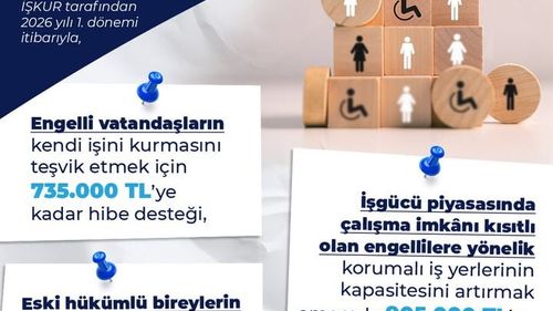 Bakan Vedat Işıkhan, engelli ve eski hükümlülere 735 bin, eski hükümlülere 550 bin, korumalı işyerleri için 905 bin liraya kadar hibe desteği başvurularının bugün başladığını açıkladı.