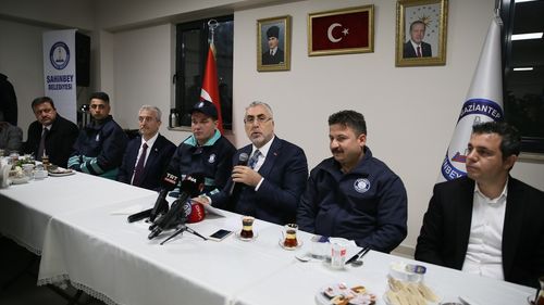 Çalışma ve Sosyal Güvenlik Bakanı Vedat Işıkhan, Gaziantep'te işçilerle sahurda buluşarak, şehrin yeniden inşası hakkında bilgiler verdi.