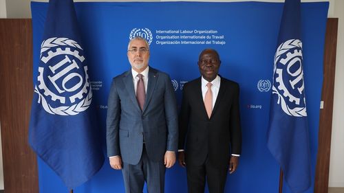 Çalışma ve Sosyal Güvenlik Bakanı Vedat Işıkhan, ILO Genel Direktörü Houngbo ile Cenevre'de sosyal adaletin güçlendirilmesi üzerine görüştü.
