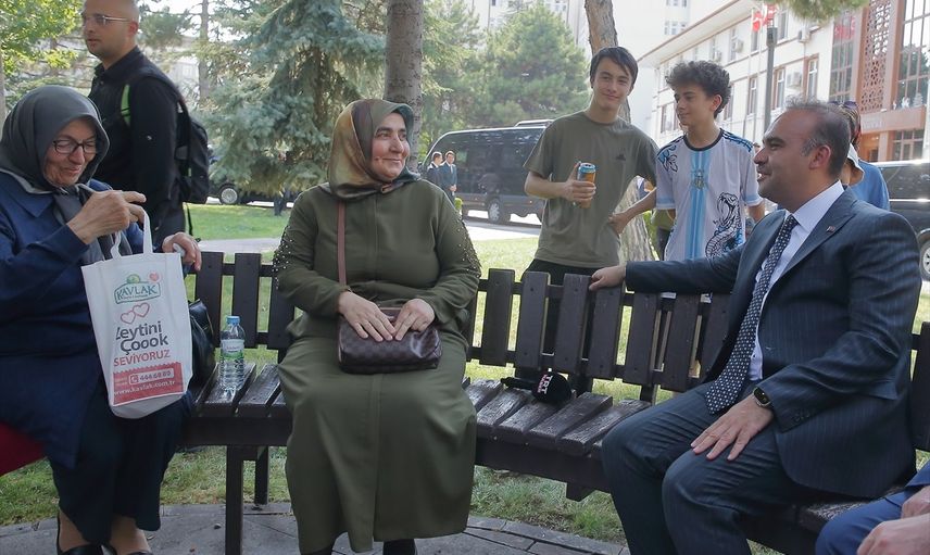 Sanayi ve Teknoloji Bakanı Mehmet Fatih Kacır, Çorum'da incelemelerde bulundu. Bakan Kacır, Çorum Valiliği bahçesinde oturan vatandaşlarla sohbet etti.