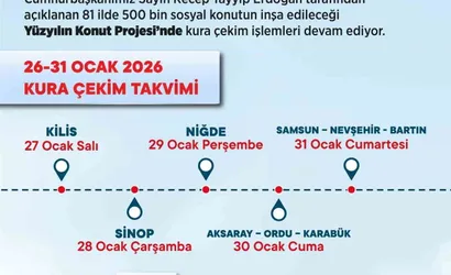 Bakan Kurum, 26-31 Ocak kura takvimini paylaşarak önümüzdeki hafta 9 ilde daha kura heyecanının yaşanacağını belirtti. Takvime göre planlanan çekimler ve konut sayıları şunlar: