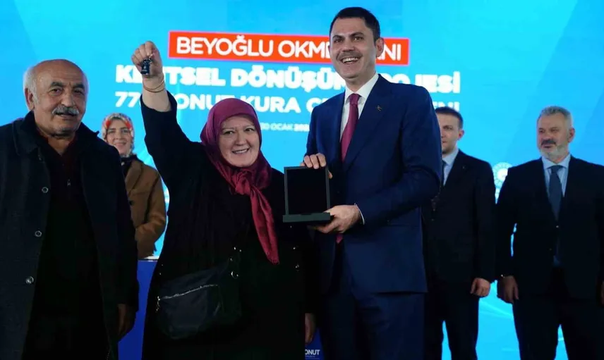 Çevre, Şehircilik ve İklim Değişikliği Bakanı Murat Kurum, Okmeydanı Kentsel Dönüşüm Projesi kapsamında yapımı tamamlanan 778 konutun kura çekim törenine katıldı.