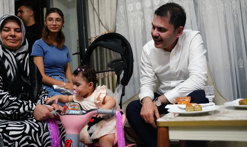 Çevre, Şehircilik ve İklim Değişikliği Bakanı Murat Kurum, Malatya'nın Akçadağ ilçesinde yeni evlerine taşınan 2 çocuklu depremzede Güde ailesinin evlerine konuk oldu.