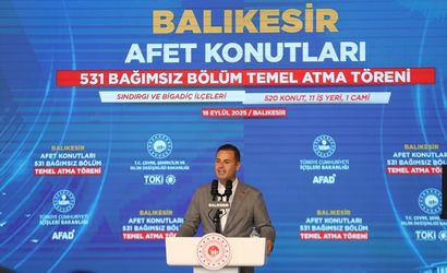 Çevre, Şehircilik ve İklim Değişikliği Bakanı Murat Kurum, Balıkesir'in Sındırgı ilçesinde düzenlenen temel atma töreninde konuştu. Bakan Kurum, 10 Ağustos'ta meydana gelen 6,1 büyüklüğündeki depremin ardından bölgede inşa edilecek afet konutlarına ilişkin çalışmaların sürdüğünü ve Sındırgı ile Bigadiç'te 531 bağımsız bölümün temelinin atılacağını belirtti.