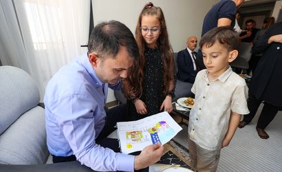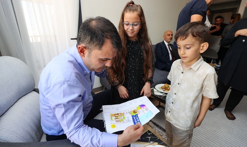 Kurum, ailenin çocukları 10 yaşındaki Hatice Kübra ve 5 yaşındaki Ahmet Çıra ile sohbet etti. İki kardeş, TOKİ'nin yaptığı evlerini ve Bakan Kurum'un evini yan yana hayal ederek çizdikleri resmi kendisine hediye etti. Bakan Kurum, resmi TOKİ binasına asılması için TOKİ Başkanı Levent Sungur'a verdi.