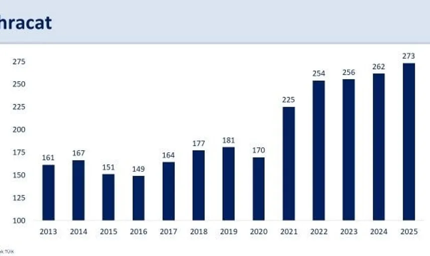 Şimşek, ihracatın 2025 yılında yüzde 4,4 artışla 273,4 milyar dolara yükseldiğini, ithalatın ise altın fiyatlarının etkisiyle arttığını ancak dış ticaret açığının Orta Vadeli Program'da (OVP) öngörülen seviyenin altında gerçekleştiğini ifade etti.