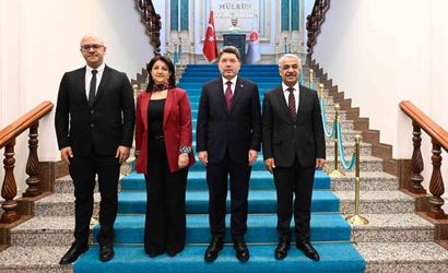 ADALET BAKANI YILMAZ TUNÇ, HALKLARIN EŞİTLİK VE DEMOKRASİ PARTİSİ (DEM PARTİ) İMRALI HEYETİ ÜYELERİNİN GERÇEKLEŞTİRDİĞİ ZİYARETE İLİŞKİN AÇIKLAMA YAPTI. TUNÇ, "ÜLKEMİZİN VE MİLLETİMİZİN GELECEĞİ İÇİN BÜYÜK BİR ÖNEME SAHİP OLAN ‘TERÖRSÜZ TÜRKİYE’ SÜRECİNE İLİŞKİN GENİŞ KAPSAMLI DEĞERLENDİRMELERDE BULUNDUK" DEDİ.