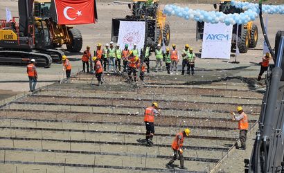 Ulaştırma ve Altyapı Bakanı Abdulkadir Uraloğlu (ortada), Kars-Iğdır-Aralık-Dilucu Demir Yolu Hattı Temel Atma Töreni'ne katıldı. Konuşmanın ardından Iğdır İl Müftüsü Zahit Demirel'in yaptığı dua ile protokol, temel atma butonuna bastı.