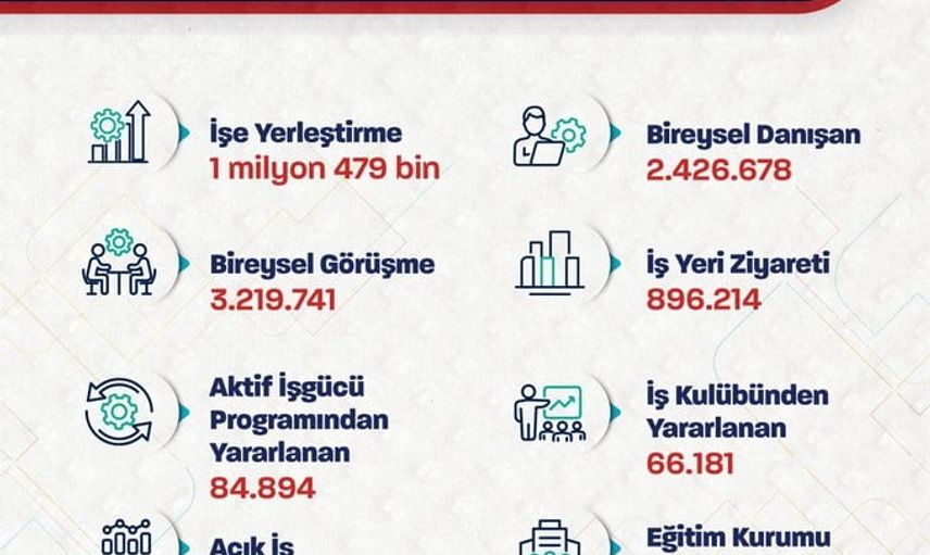 Açıklamada, İŞKUR'un işgücü piyasasının ihtiyaçlarını tespit etme ve istihdam kapasitesini güçlendirme çalışmalarına dikkat çekildi. Bu kapsamda 3,2 milyondan fazla bireysel görüşme gerçekleştirildiği ve 900 bine yakın iş yeri ziyareti yapıldığı belirtildi.