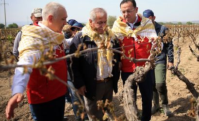 Tarım ve Orman Bakan Yardımcısı Ebubekir Gizligider, Manisa'nın Saruhanlı ilçesinde zirai dondan etkilenen üzüm bağlarında incelemelerde bulundu. Inceleme sırasında üreticilerle ve İl Tarım ve Orman Müdürlüğü yetkilileriyle bilgi alışverişinde bulundu.