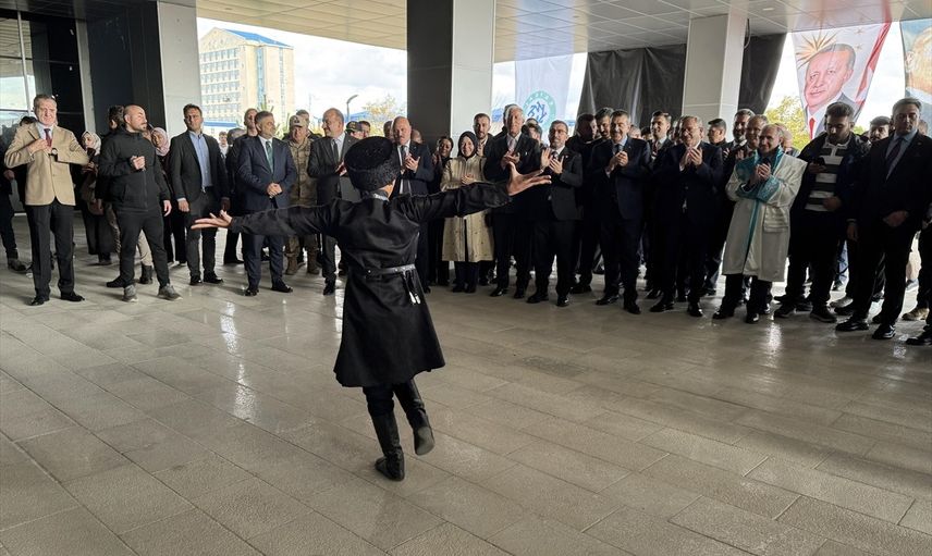 Kars Kafkas Üniversitesi 2025-2026 akademik yılı açılış törenine katılmak üzere Kars'a gelen Milli Eğitim Bakanı Yusuf Tekin'i Üniversite Kültür Merkezi girişinde Filistinli öğrenciler çiçeklerle karşıladı.