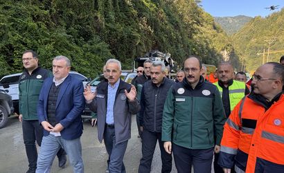 Ulaştırma ve Altyapı Bakanı Abdulkadir Uraloğlu ile Gençlik ve Spor Bakanı Osman Aşkın Bak, sağanaktan etkilenen Çamlıhemşin-Ayder Yaylası yolunda sürdürülen çalışmaları inceledi.