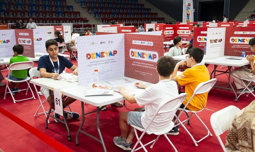 Bakü Spor Sarayı'nda yapılan uygulamalı sınavda, 29-30 Haziran'da gerçekleştirilen yazılı sınava katılan yaklaşık 5 bin öğrenci arasından en yüksek puanı alan 431 aday yer aldı. 4, 5, 6 ve 7. sınıf mezunlarından oluşan bu öğrenciler, belirlenen süre içinde proje ödevlerini verilen malzemelerle hazırlayıp jüriye sundular.