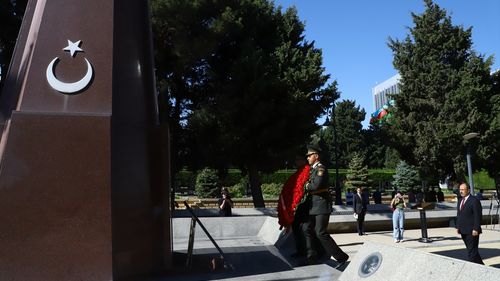 Bakü'nün kurtuluşunun 106. yıl dönümü, Türk Şehitliği'nde yapılan törenle kutlandı.